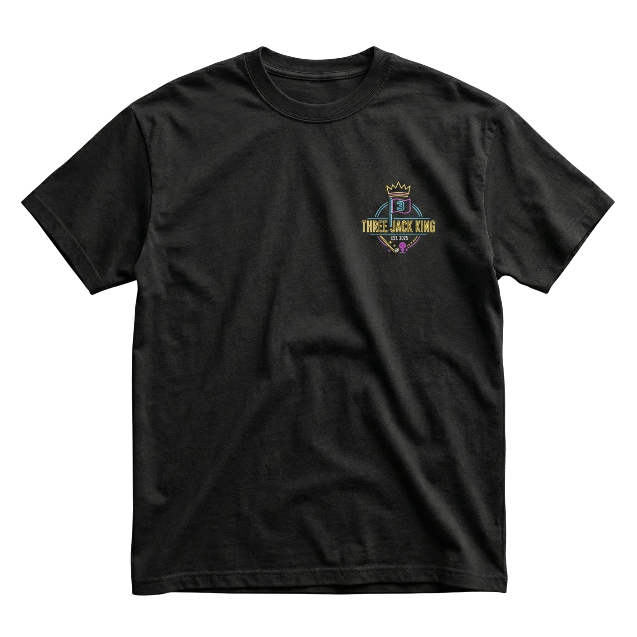 The Neon Greens T-Shirt isn't just a shirt—it's a statement of course culture and rugged durability. Crafted from premium 100% USA cotton with a heavyweight garment-dyed finish, this tee offers a substantial, vintage-soft feel that only gets better with time. The high-ribbed neck, the Three Jack King crest on the chest, and the electric retro-arcade graphic on the back strike the perfect balance between street style and fairway function, making this a heavy-duty staple for cooler mornings on the green or late nights out.
